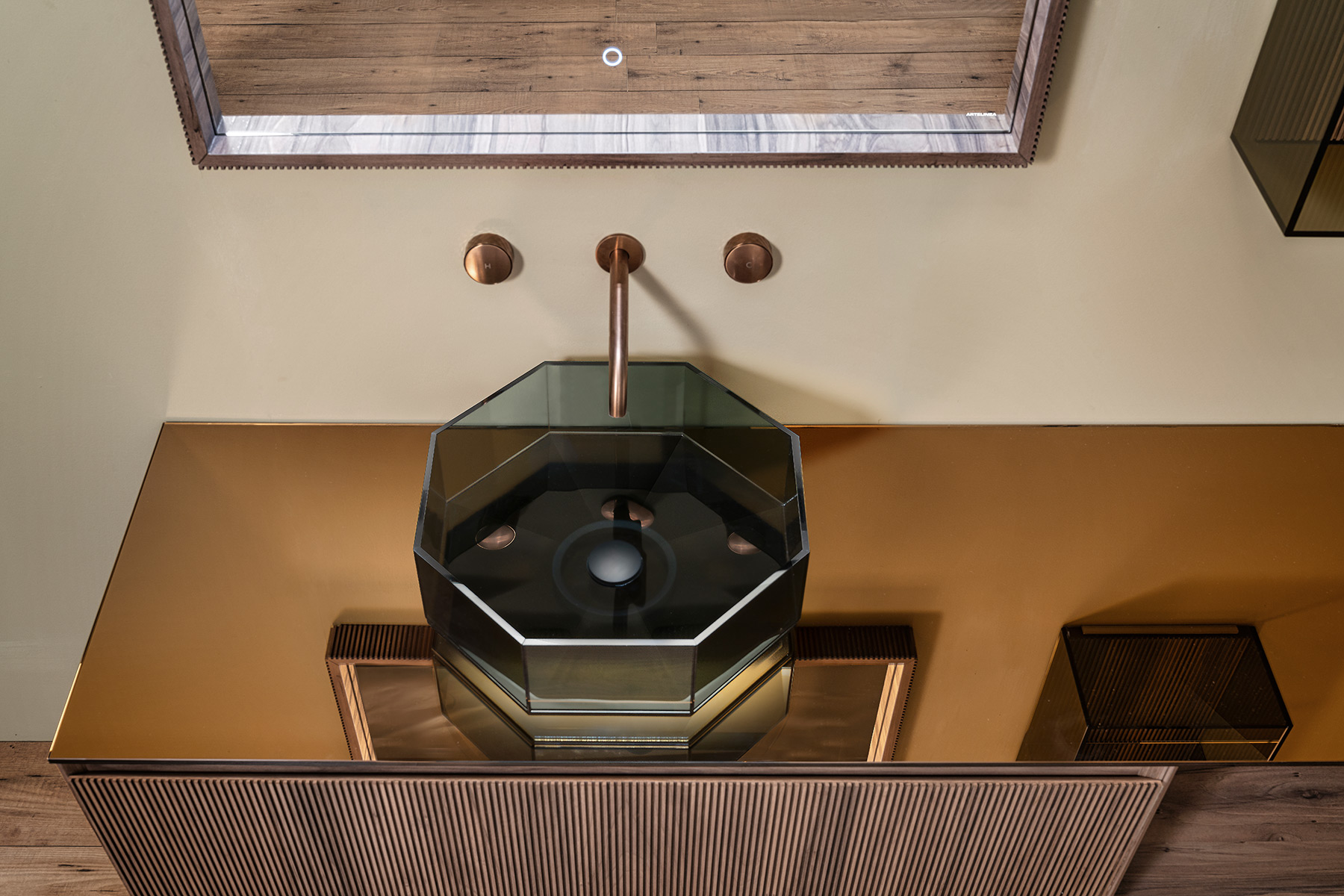 Vitruvio is born, the new washbasin that brings geometry to the heart of the bathroom space. A project that combines form, balance and architectural character, giving life to a timeless design icon.